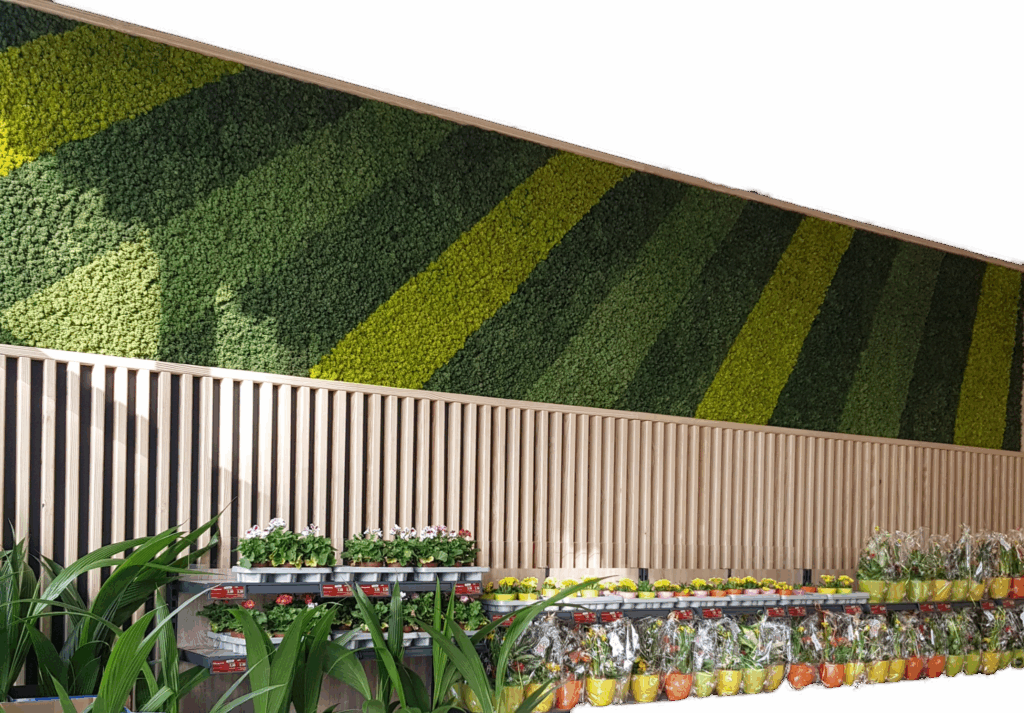 Nos aménagements intérieurs jouent avec les volumes et les perspectives. Un mur peut devenir une fresque vivante, un plafond une voûte végétale immersive. Les jeux de densité, de formes et de couleurs créent une atmosphère apaisante qui stimule les sens, tout en renforçant l’identité visuelle d’un espace.