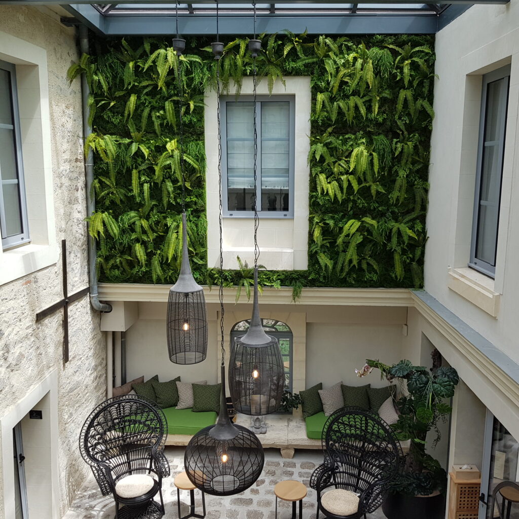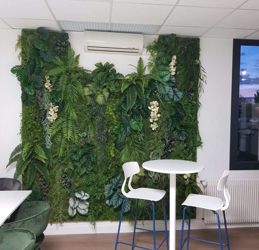Inspirations pour végétaliser un mur, un plafond sans entretien avec des végétaux stabilisées ou synthétiques selon le contexte technique et l’usage.